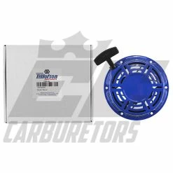 The Blue Starter Recoil (Pull Rope) is the OE replacement on the Tillotson 196R/RS Engines, not confused with the greyhound engines. The Starter recoil fits on any of our clone blower housings, so feel free to mix and match for your style. They fit any of the 196cc 6.5hp Clone, Honda GX200, Ducar 196, Ducar/Tillotson 212E, Tillotson 196R/RS, Tillotson 212R, Tillotson 225RS, Ducar/Tillotson 212E, Predator 212, and BSP 196 and 212 Engines.